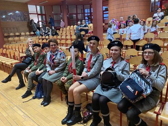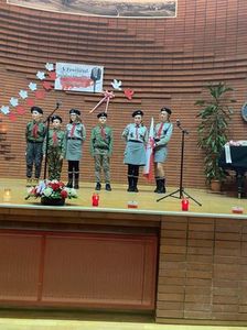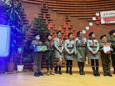 Zdobyliśmy II miejsce śpiewając "Pieśń o harcerzu".